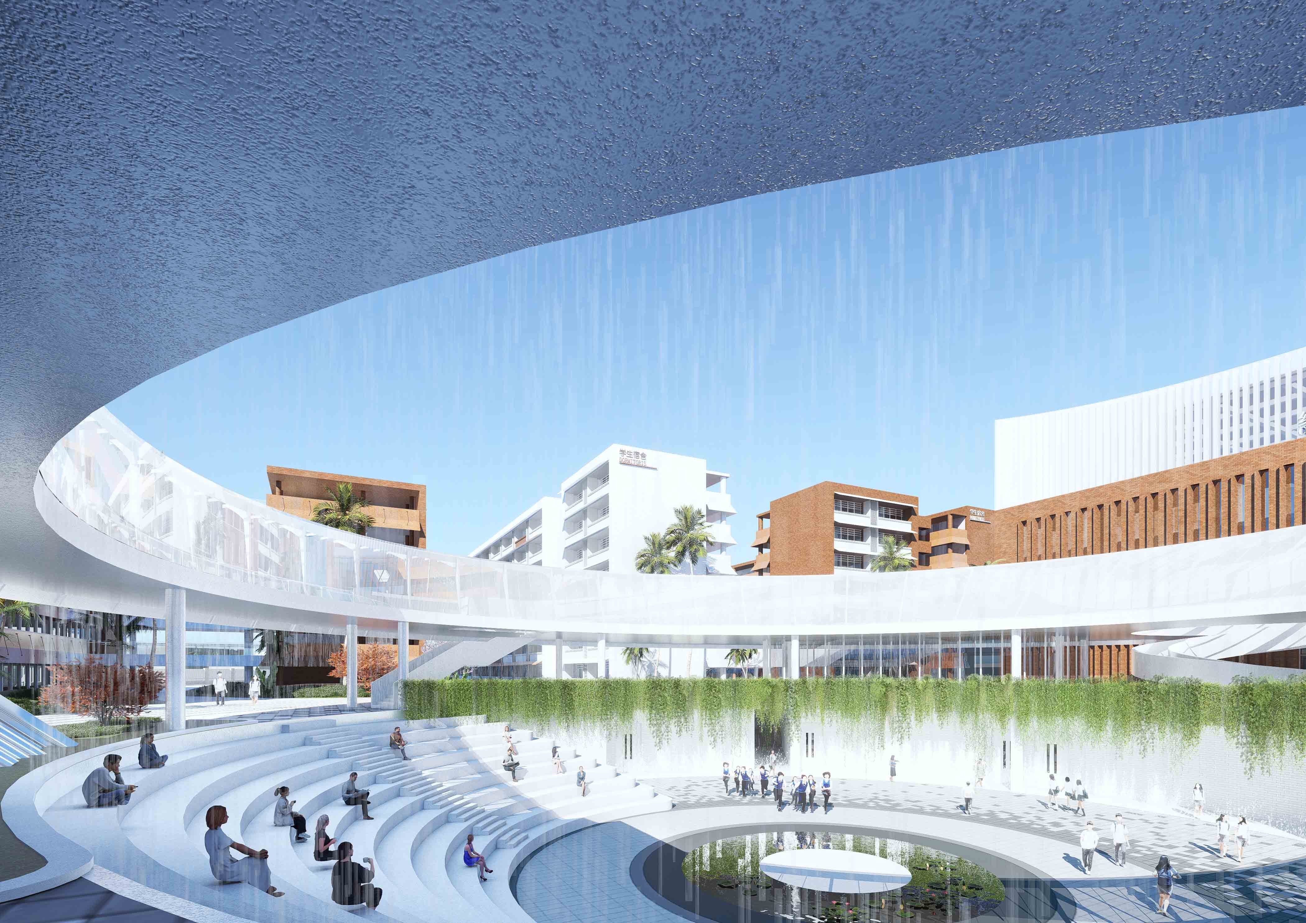 地域文化與教育的融合設計。項目以“環聚智慧,圓夢啟航”為核心理念,萃取白沙黎族文化,將院之靜謐、廊之靈動、水之柔美、庭之開闊等空間元素巧妙融合其中,從宏觀到微觀,全方位勾勒出校園的獨特魅力,讓校園成為文化載體。